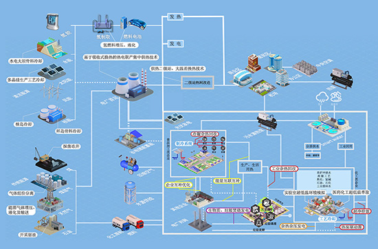 建立冷/熱/水/汽/電/污/廢等資源的多能互補系統(tǒng),實現(xiàn)產(chǎn)業(yè)園區(qū)一體化集成功能系統(tǒng),通過對能源轉換、能源應用、余能回收、廢棄物處理各環(huán)節(jié)的整體設計、統(tǒng)一規(guī)劃和分級利用,實現(xiàn)從-271℃—200℃范圍內(nèi)的能源階梯級利用、余能綜合利用、能源高效利用,大幅度提高能源的總體效率,以智慧生態(tài)平臺優(yōu)勢,實現(xiàn)設備、功能、資源的多重集約,為客戶提供高附加值的解決方案。